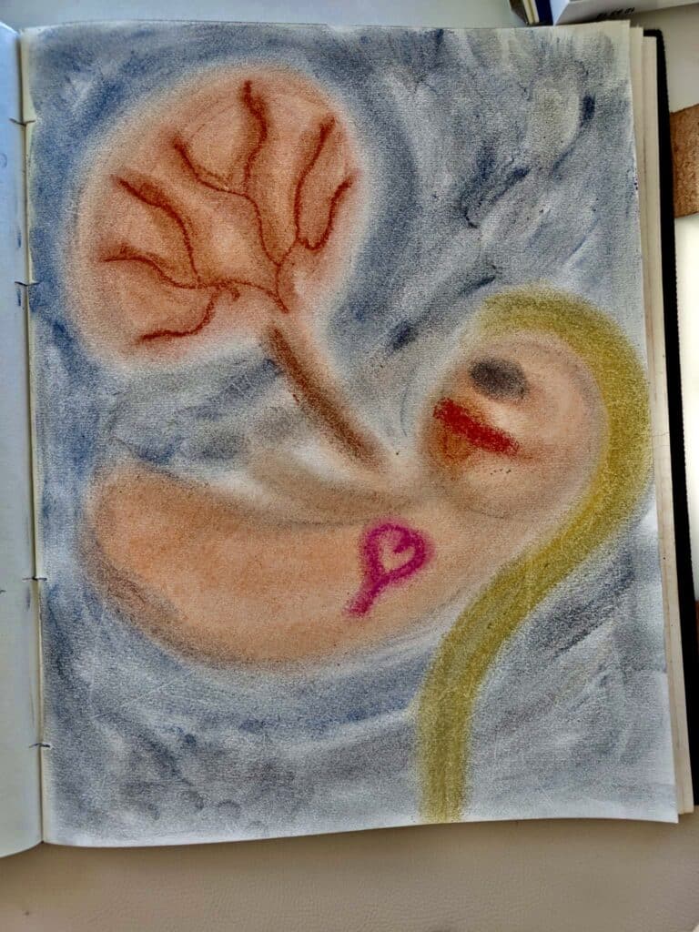 Jeg når lige at tænke, denne gang bliver det anderledes, barnet er født, det er en dreng, men jeg må ikke holde ham endnu før end moderkagen er født. Jeg mærker frygt inde i min krop, da personen foran mig begynder at hive i navlestrengen, og jeg mærker moderkagen løsne sig, det er meget ubehageligt og jeg har ikke lyst til at den bliver hevet ud.